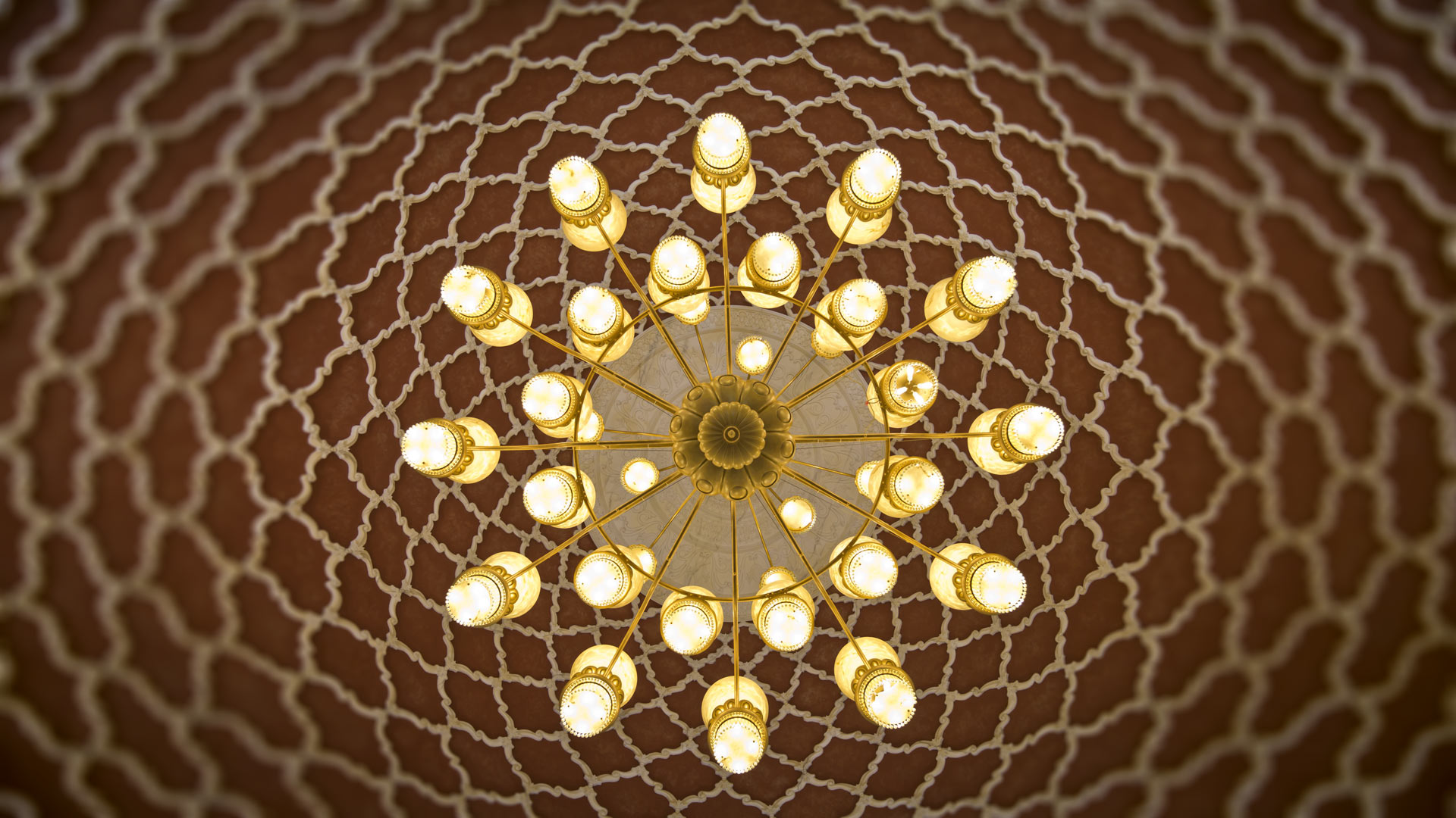 Flämischer Barockleuchter 16 Arme in 2 Kränzen Kaminzimmer Schloss Stolberg, D = ca. 103 cm · H = ca. 106 cm Messingguss